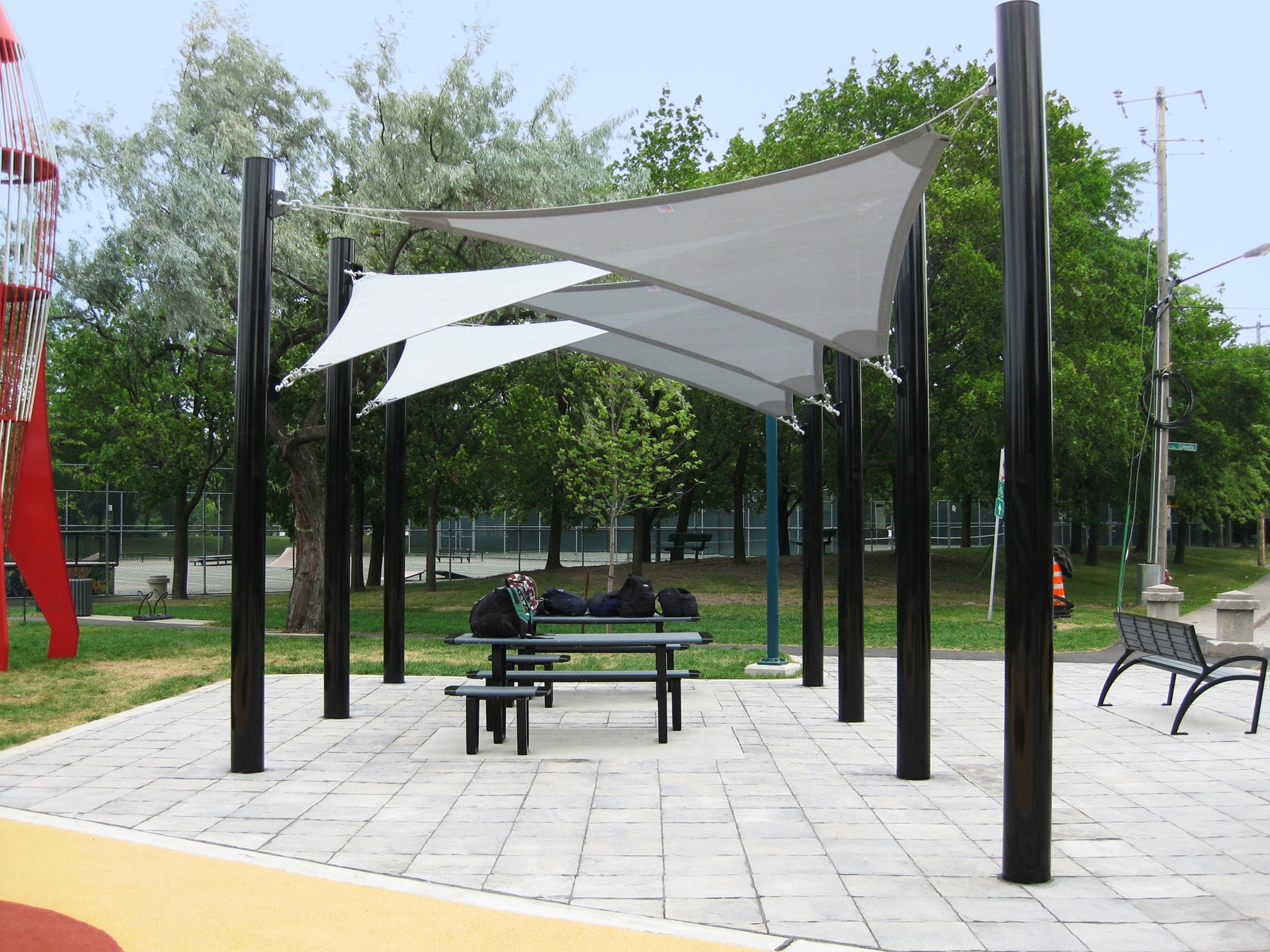 Có thể để bạt ở các mức khác nhau khi buộc dây dù neo bạt ở giữa hoặc gần sát đất. Khi muốn che nắng với diện tích lớn che nắng từ bên trên không ảnh hưởng đến các hoạt động bên dưới.