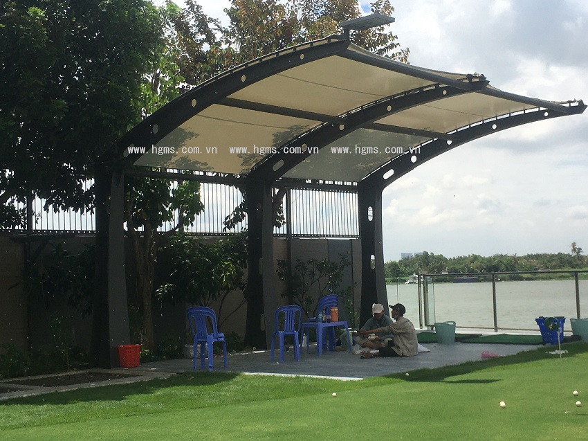 Mẫu thiết kế mái che bạt căng cơ bản HGMS chuyên thiết kế, thi công, lắp đặt hệ thống mái che cho Quý...