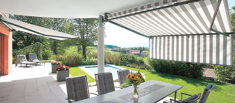Khi mưa, khi nắng, mái hiên xếp di động được xòe ra để bảo vệ đồ đạc hay những hoạt động đang diễn ra. Khi thời tiết trong lành mái hiên xếp di động có thể được thu gọn để trả lại khoảng không tự nhiên tối đa cho không gian.